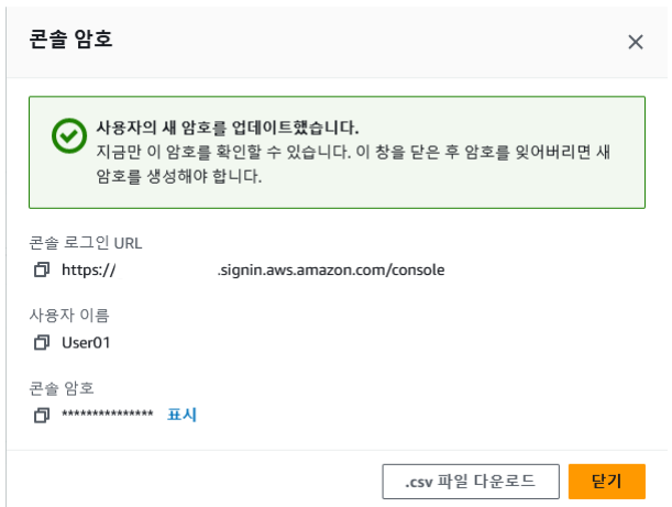 생성된 콘솔 암호를 다운 받거나 확인한다.