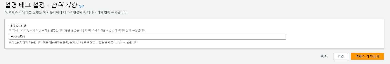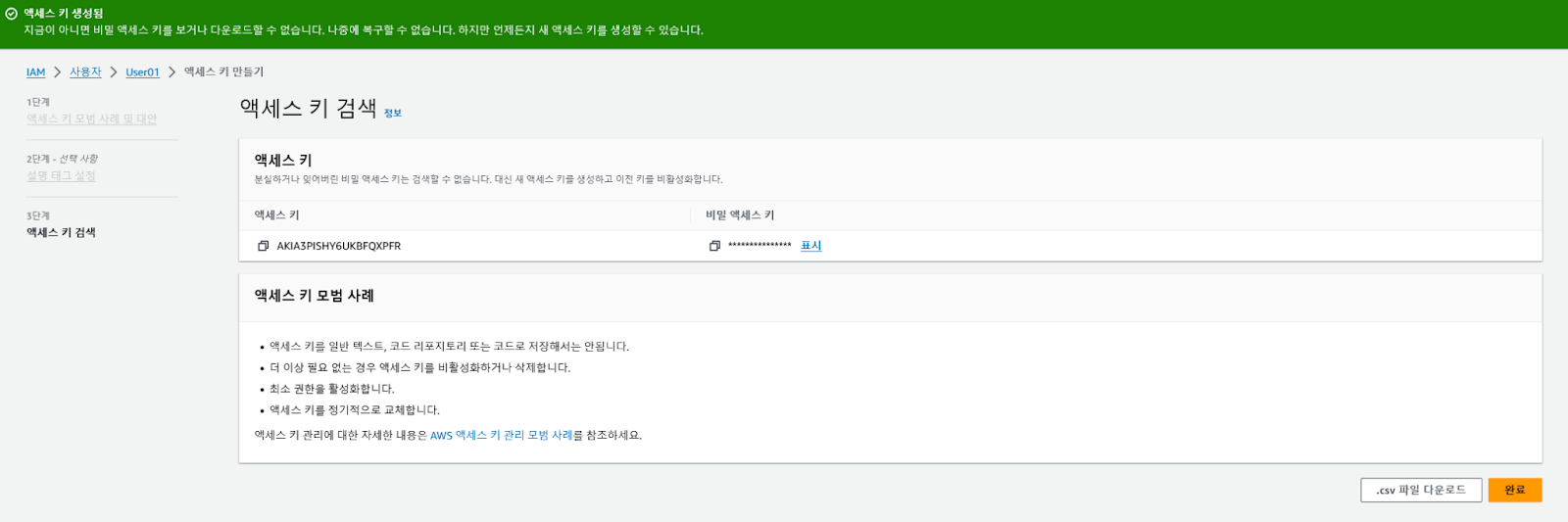 * 콘솔에 접근하는 것과 액세스 키가 다름을 알수 있다.