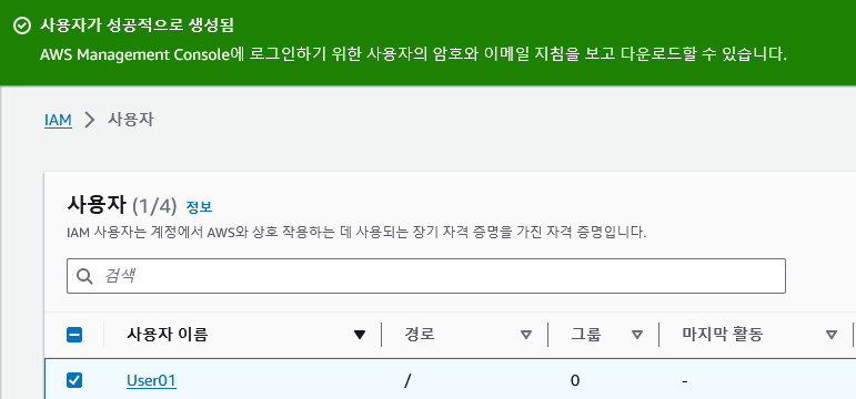 마지막으로 검토 및 생성을 통해 유저를 생성한다.