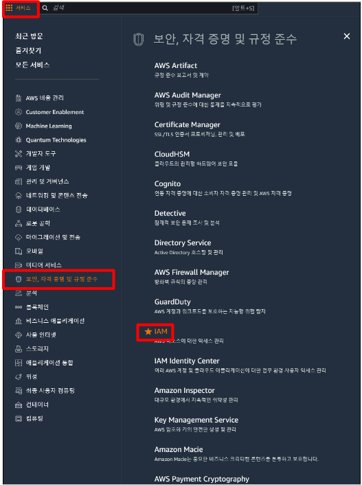 이제 로그인한 계정으로 IAM 서비스를 이용해보자.