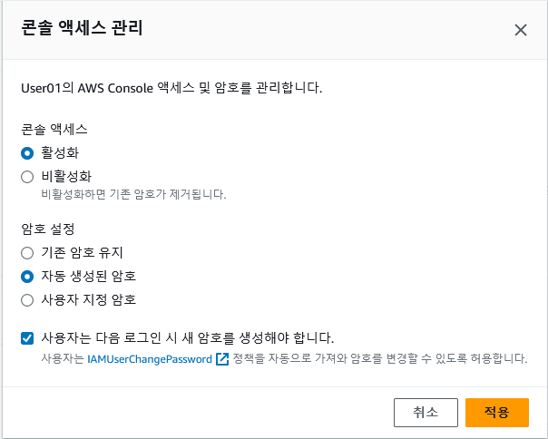 이제 콘솔 로그인 권한을 주고 다시 로그인을 시도해보자.