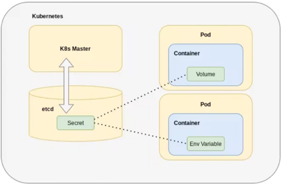 시크릿은 암호, 토큰 또는 키와 같은 소량의 중요한 데이터를 포함하는