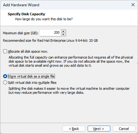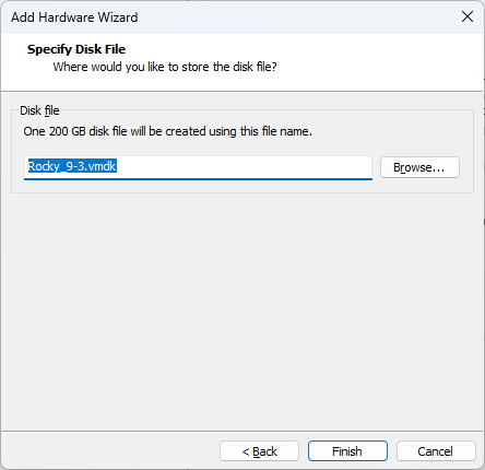 새 가상디스크 생성, 생성할 용량과 원하는 이름 설정 후 Finish 클릭