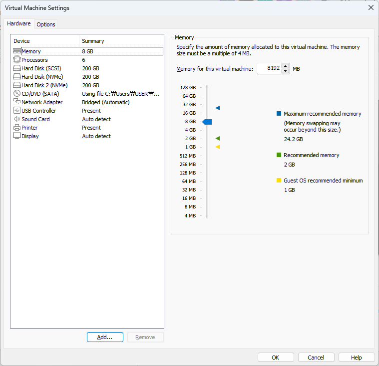 방금 추가한 하드디스크(Hard Disk 2 (NVMe))가 추가되어있는 것을 확인