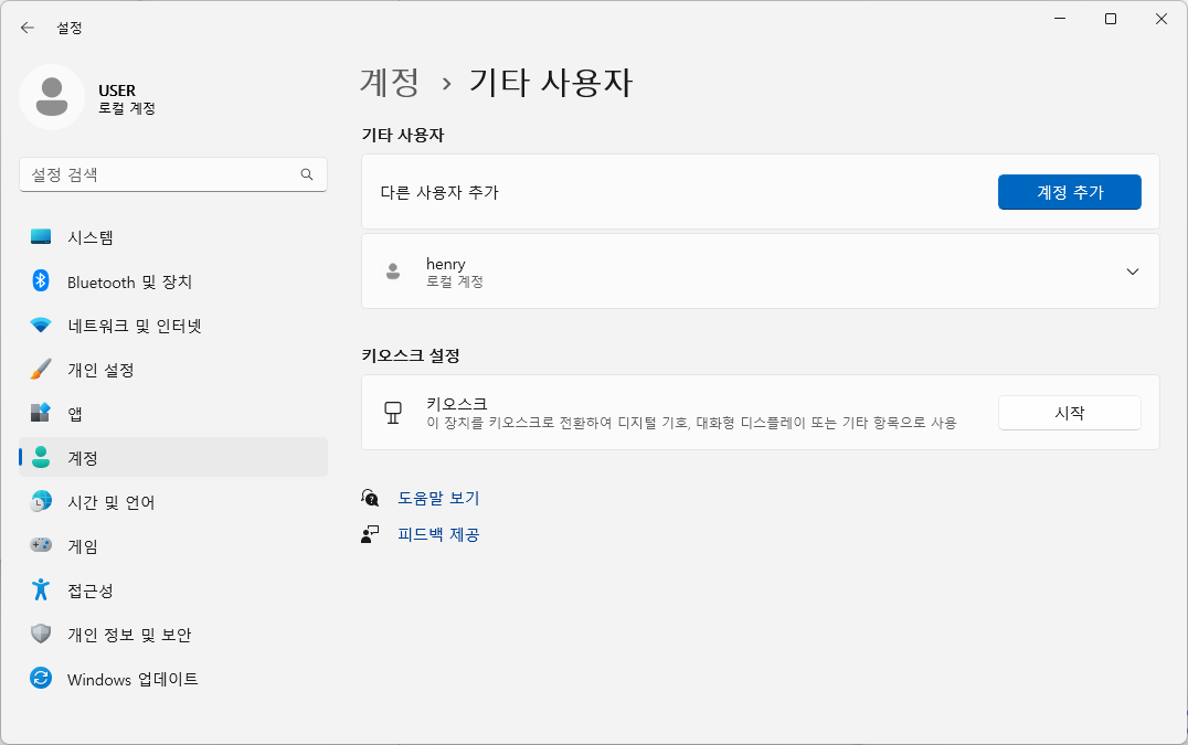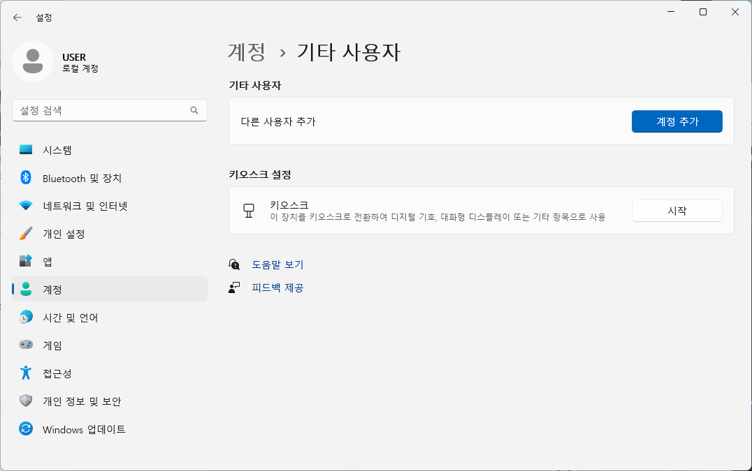 계정 - 기타 사용자 - 다른 사용자 추가 - ‘이 사람의 로그인 정보를 가지고 있지 않습니다’ 선택