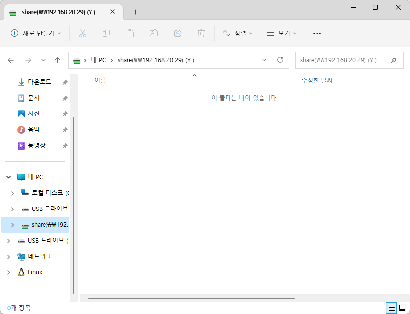- 디렉토리를 만들어 윈도우의 폴더와 마운트