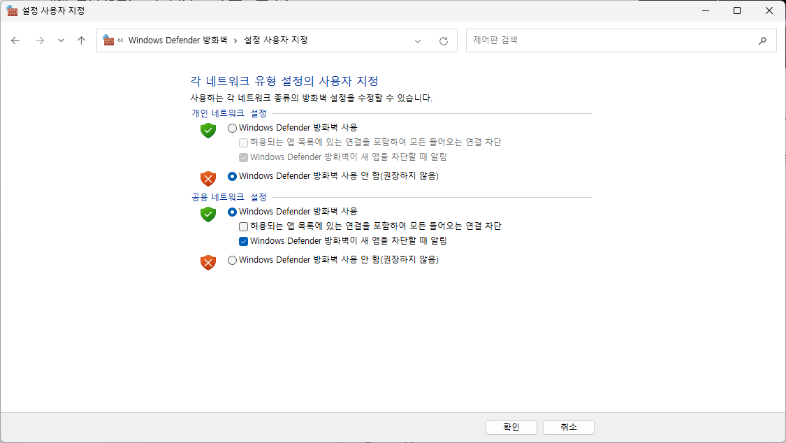 - 윈도우의 Windows Defender 종료