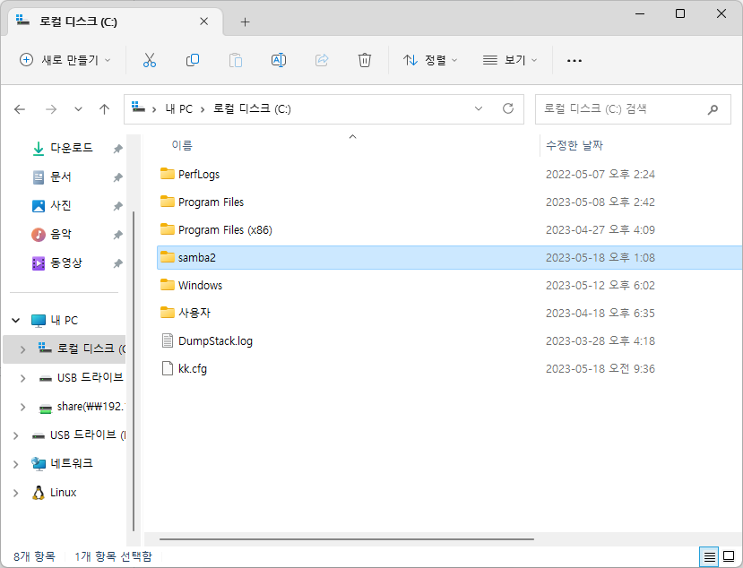 - 파일탐색기에서 공유할 폴더 생성 후 공유권한 설정